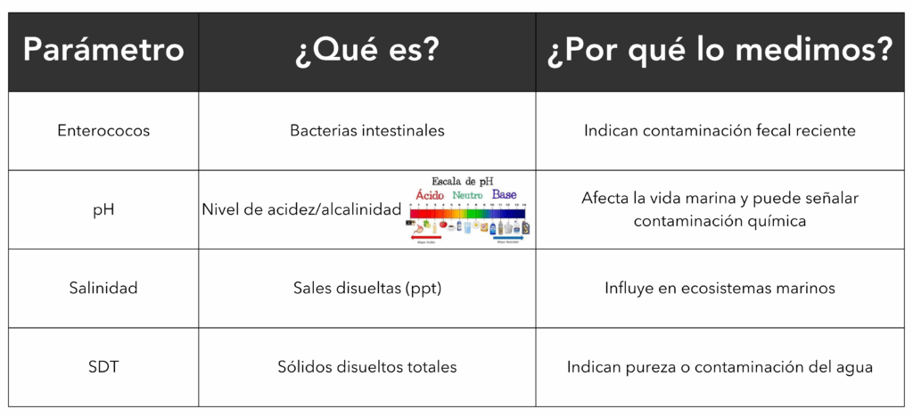 Los enterococos son bacterias intestinales presentes en humanos y animales. Su detección en el agua del mar indica contaminación fecal reciente, lo que representa un riesgo para la salud. Por eso, ¡los monitoreamos cada semana!