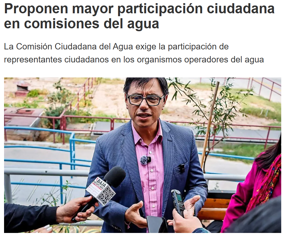 Christian Galarza, (19 de febrero, 2026). Proponen mayor participación ciudadana en comisiones del agua. La Voz. Disponible en https://oem.com.mx/lavozdelafrontera/local/proponen-mayor-participacion-ciudadana-en-comisiones-del-agua-28555324