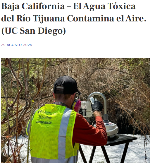 Alex Fox (28 de agosto 2025) Baja California – El Agua Tóxica del Río Tijuana Contamina el Aire. (UC San Diego) agua.org. Disponible en: https://agua.org.mx/baja-california-el-agua-toxica-del-rio-tijuana-contamina-el-aire-uc-san-diego/